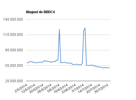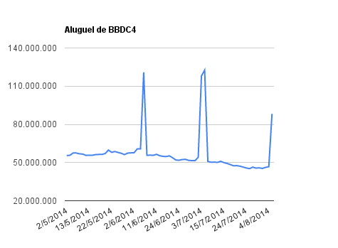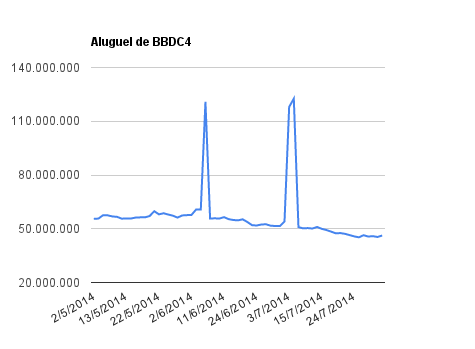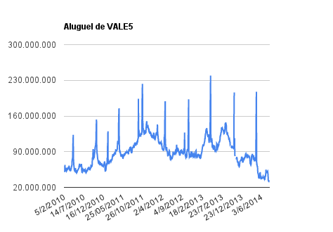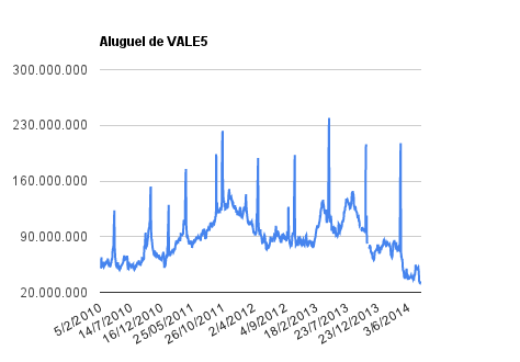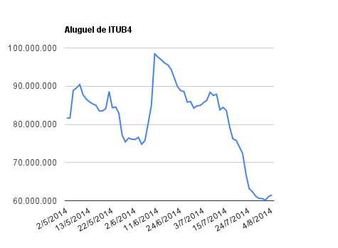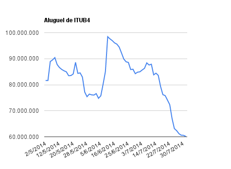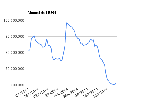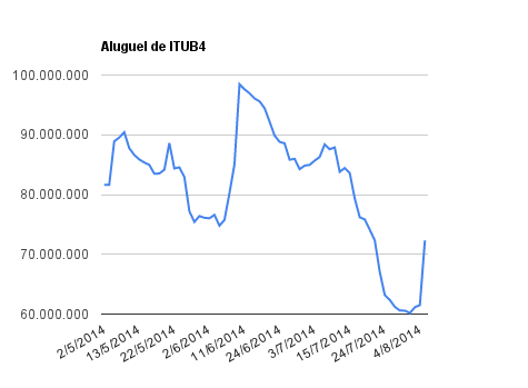Este é um dado que acompanho diariamente, serve para que eu veja o “peso” extra que existe sobre estas ações. Normalmente – veja bem, normalmente … – um aumento na posição alugada pode significar um movimento de queda no papel. E o contrário também é verdadeiro, uma cobertura pode significar um movimento de alta.