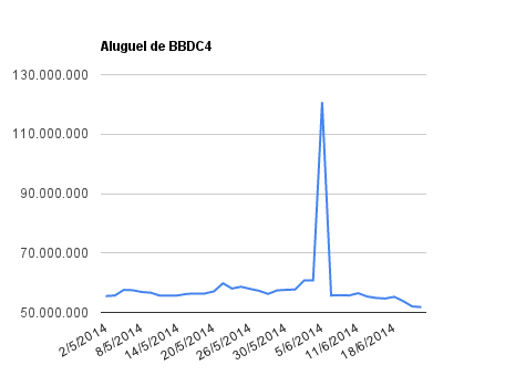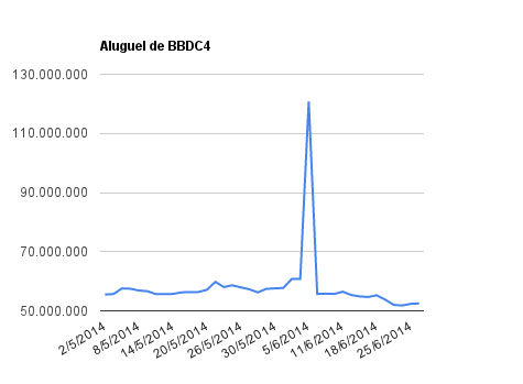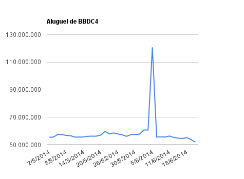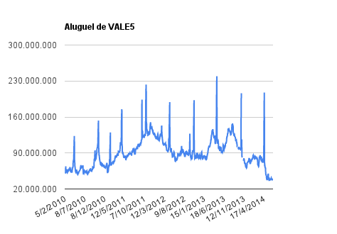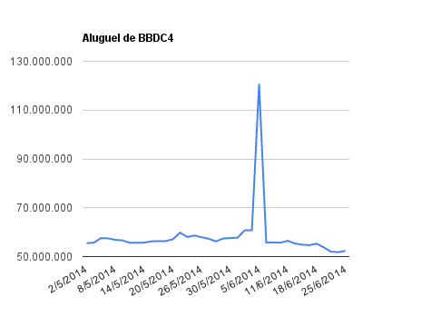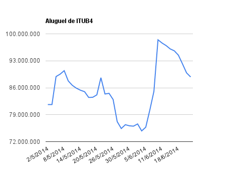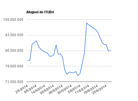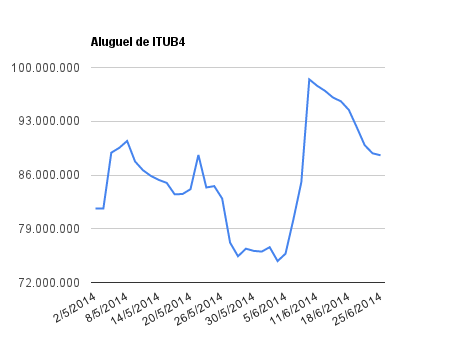 Este é um dado que acompanho diariamente, serve para que eu veja o “peso” extra que existe sobre estas ações. Normalmente – veja bem, normalmente … – um aumento na posição alugada pode significar um movimento de queda no papel. E o contrário também é verdadeiro, uma cobertura pode significar um movimento de alta.