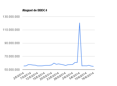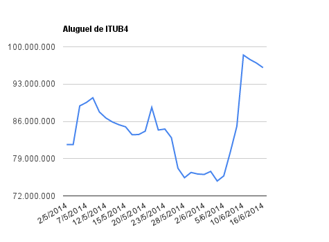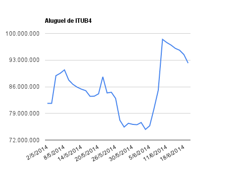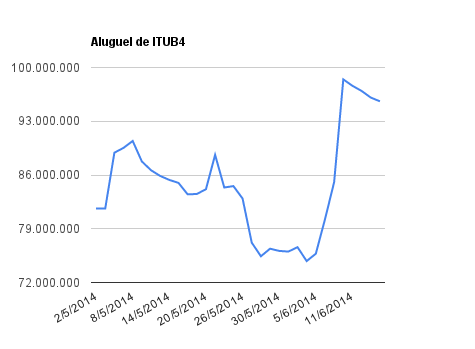 Este é um dado que acompanho diariamente, serve para que eu veja o “peso” extra que existe sobre estas ações. Normalmente – veja bem, normalmente … – um aumento na posição alugada pode significar um movimento de queda no papel. E o contrário também é verdadeiro, uma cobertura pode significar um movimento de alta.