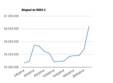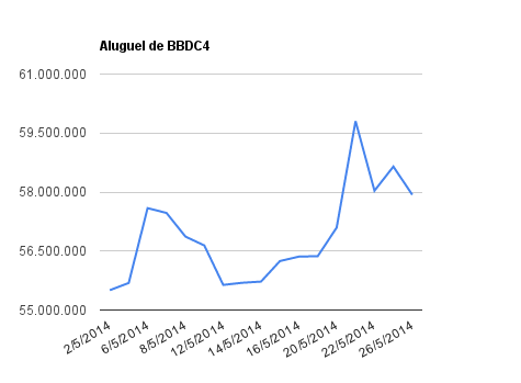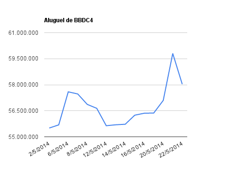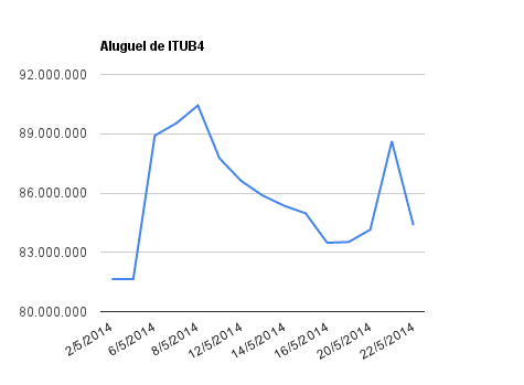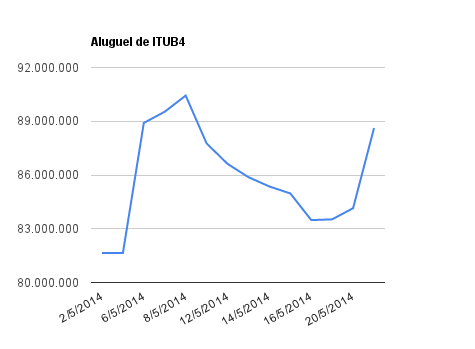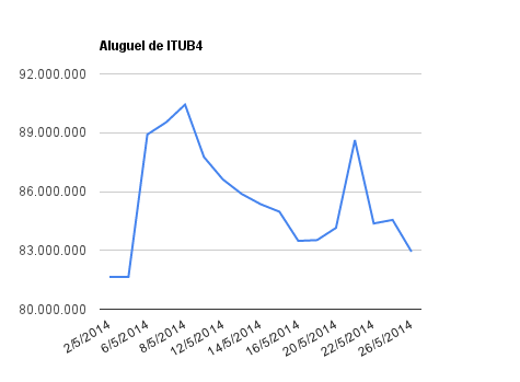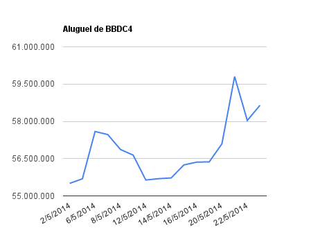 Este é um dado que acompanho diariamente, serve para que eu veja o “peso” extra que existe sobre estas ações. Normalmente – veja bem, normalmente … – um aumento na posição alugada pode significar um movimento de queda no papel. E o contrário também é verdadeiro, uma cobertura pode significar um movimento de alta.
