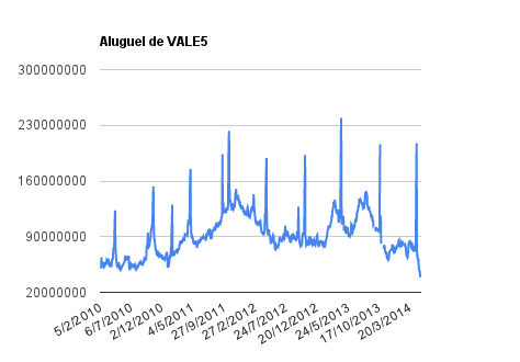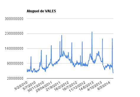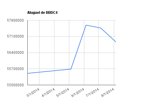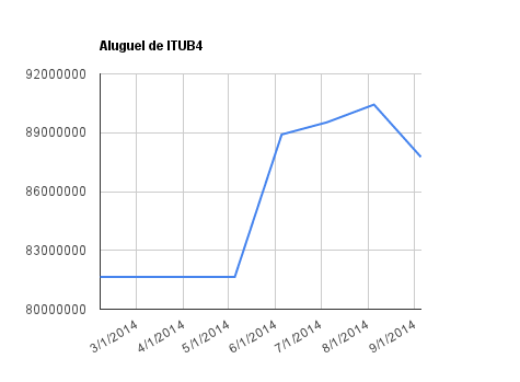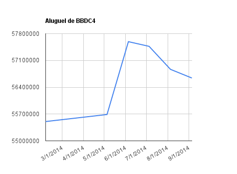 Este é um dado que acompanho diariamente, serve para que eu veja o “peso” extra que existe sobre estas ações. Normalmente – veja bem, normalmente … – um aumento na posição alugada pode significar um movimento de queda no papel. E o contrário também é verdadeiro, uma cobertura pode significar um movimento de alta.