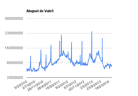 Este é um dado que acompanho diariamente, serve para que eu veja o “peso” extra que existe sobre estas ações. Normalmente – veja bem, normalmente … – um aumento na posição alugada pode significar um movimento de queda no papel. E o contrário também é verdadeiro, uma cobertura pode significar um movimento de alta.