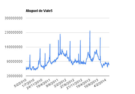 Como já falei várias vezes aqui no Clube, o aluguel das ações sobe “exageradamente” às vésperas da distribuição de juros sobre capital próprio pois determinados tipos de fundos de investimento têm uma vantagem tributária que o investidor pessoa física não tem, eles não precisam recolher o imposto de renda (de 15%) direto na fonte. O IR destes fundos é recolhido apenas no momento do resgate da aplicação, com isso o fundo pode trabalhar com estes 15% “extras” durante algum tempo, aumentando a rentabilidade da carteira.