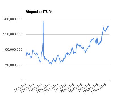 Este é um dado que acompanho diariamente, serve para que eu veja o “peso” extra que existe sobre estas ações. Normalmente – veja bem, normalmente … – um aumento na posição alugada pode significar um movimento de queda no papel. E o contrário também é verdadeiro, uma cobertura pode significar um movimento de alta.