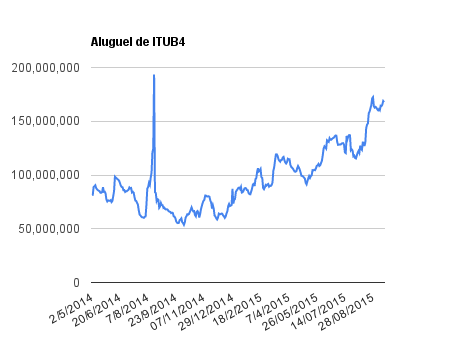 Este é um dado que acompanho diariamente, serve para que eu veja o “peso” extra que existe sobre estas ações. Normalmente – veja bem, normalmente … – um aumento na posição alugada pode significar um movimento de queda no papel. E o contrário também é verdadeiro, uma cobertura pode significar um movimento de alta.