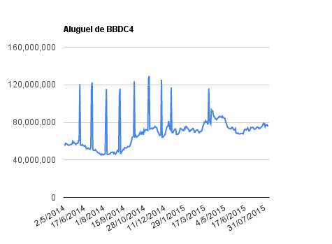 Este é um dado que acompanho diariamente, serve para que eu veja o “peso” extra que existe sobre estas ações. Normalmente – veja bem, normalmente … – um aumento na posição alugada pode significar um movimento de queda no papel. E o contrário também é verdadeiro, uma cobertura pode significar um movimento de alta.