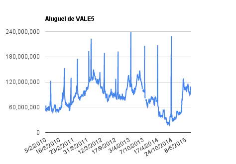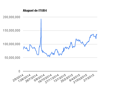 Este é um dado que acompanho diariamente, serve para que eu veja o “peso” extra que existe sobre estas ações. Normalmente – veja bem, normalmente … – um aumento na posição alugada pode significar um movimento de queda no papel. E o contrário também é verdadeiro, uma cobertura pode significar um movimento de alta.