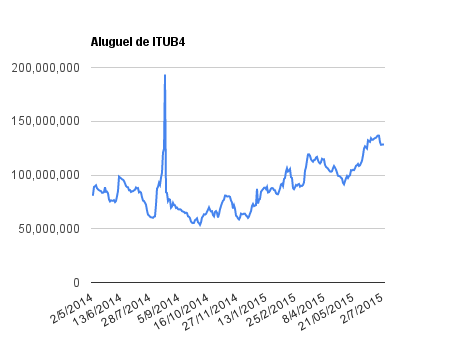 Este é um dado que acompanho diariamente, serve para que eu veja o “peso” extra que existe sobre estas ações. Normalmente – veja bem, normalmente … – um aumento na posição alugada pode significar um movimento de queda no papel. E o contrário também é verdadeiro, uma cobertura pode significar um movimento de alta.