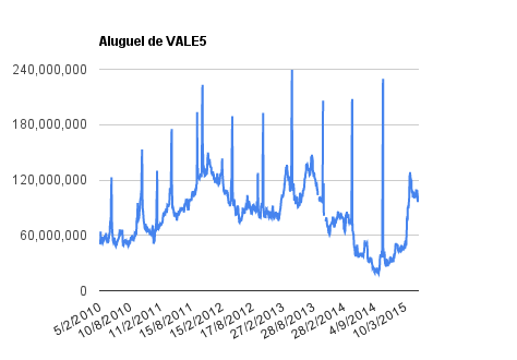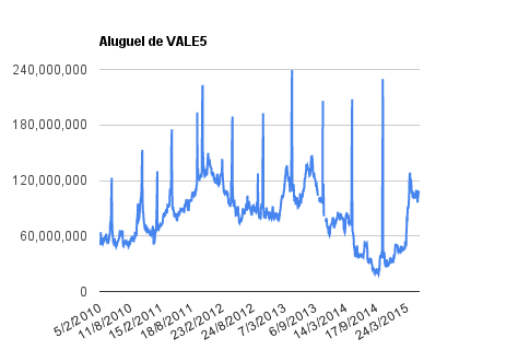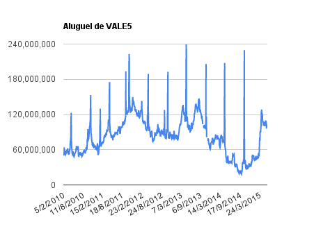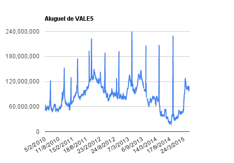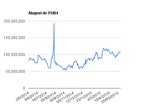 Este é um dado que acompanho diariamente, serve para que eu veja o “peso” extra que existe sobre estas ações. Normalmente – veja bem, normalmente … – um aumento na posição alugada pode significar um movimento de queda no papel. E o contrário também é verdadeiro, uma cobertura pode significar um movimento de alta.