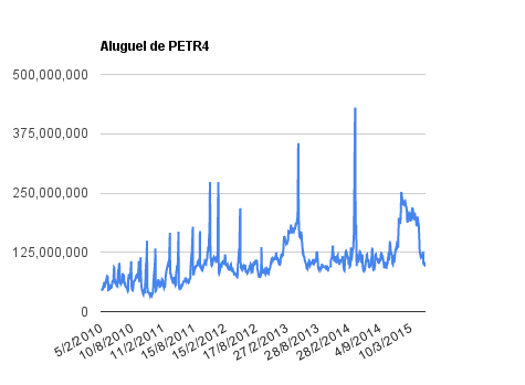 Houve uma leve diminuição nas posições vendidas em opções CALL da PETR4 … mas foi coisa leve. Enquanto isso vimos um aumento considerável, na casa dos 10%, em seu aluguel.
