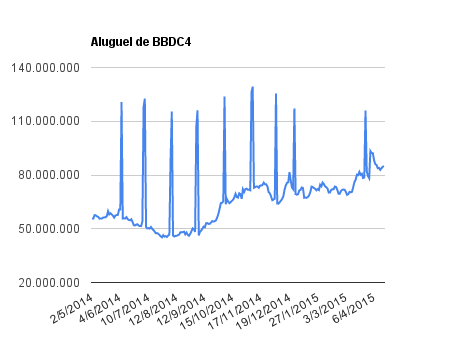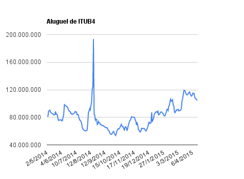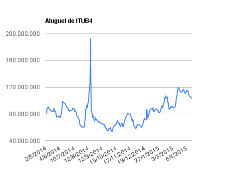 Este é um dado que acompanho diariamente, serve para que eu veja o “peso” extra que existe sobre estas ações. Normalmente – veja bem, normalmente … – um aumento na posição alugada pode significar um movimento de queda no papel. E o contrário também é verdadeiro, uma cobertura pode significar um movimento de alta.