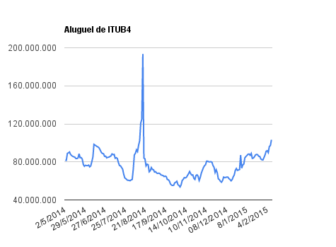 Este é um dado que acompanho diariamente, serve para que eu veja o “peso” extra que existe sobre estas ações. Normalmente – veja bem, normalmente … – um aumento na posição alugada pode significar um movimento de queda no papel. E o contrário também é verdadeiro, uma cobertura pode significar um movimento de alta.