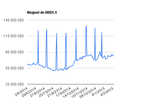 Mas uma coisa que me deixou com a pulga atrás da orelha não é relacionada a ela … Hoje destaco as ações do Itaú. Já viu o salto que o aluguel dela deu ? Um patamar bem elevado, ainda mais agora que não temos a distorção JCP para “justificar” uma esticada assim.