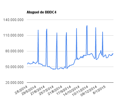 Este é um dado que acompanho diariamente, serve para que eu veja o “peso” extra que existe sobre estas ações. Normalmente – veja bem, normalmente … – um aumento na posição alugada pode significar um movimento de queda no papel. E o contrário também é verdadeiro, uma cobertura pode significar um movimento de alta.
