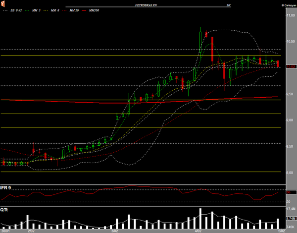 Se cai mais ou volta a subir ? Olha … Tem um suporte na região dos R$9,50 … além disso temos uma reunião de conselho que elegerá a nova diretoria nesta sexta-feira e um vencimento de opções logo mais na segunda. Portanto, dizer qualquer coisa (absolutamente qualquer coisa) é chutar no vazio.