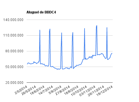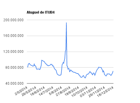 Este é um dado que acompanho diariamente, serve para que eu veja o “peso” extra que existe sobre estas ações. Normalmente – veja bem, normalmente … – um aumento na posição alugada pode significar um movimento de queda no papel. E o contrário também é verdadeiro, uma cobertura pode significar um movimento de alta.