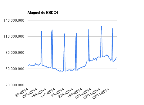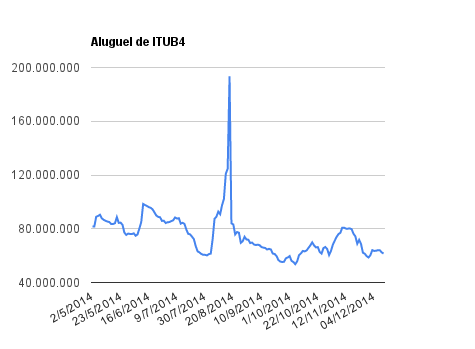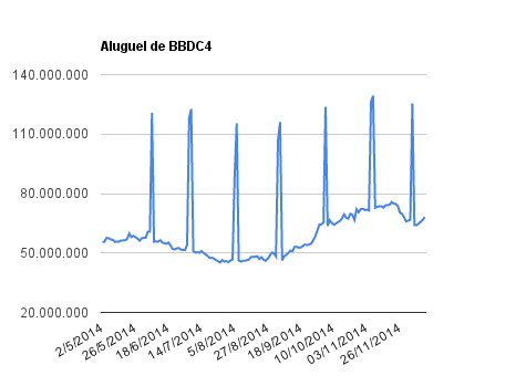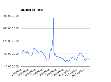 Este é um dado que acompanho diariamente, serve para que eu veja o “peso” extra que existe sobre estas ações. Normalmente – veja bem, normalmente … – um aumento na posição alugada pode significar um movimento de queda no papel. E o contrário também é verdadeiro, uma cobertura pode significar um movimento de alta.