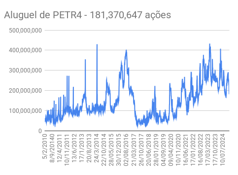 Este é um dado que acompanho diariamente, serve para que eu veja o “peso” extra que existe sobre estas ações. Normalmente – veja bem, normalmente … – um aumento na posição alugada pode significar um movimento de queda no papel. E o contrário também é verdadeiro, uma cobertura pode significar um movimento de alta.
