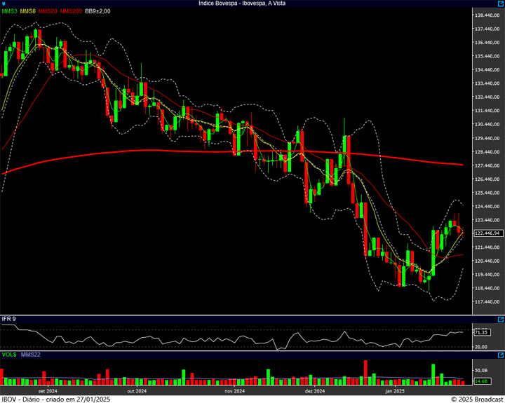 Estas são as nossas resistências no momento. O suporte atual se encontra na faixa dos 122 mil pontos.