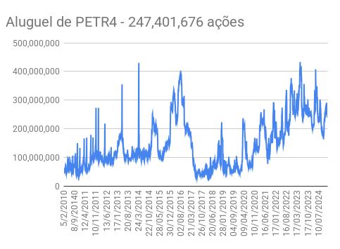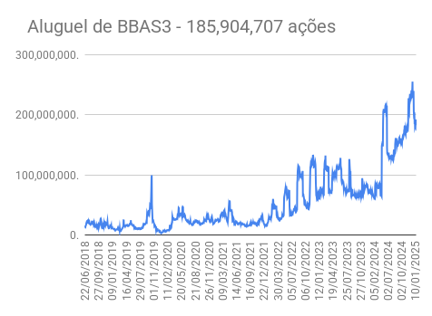 Este é um dado que acompanho diariamente, serve para que eu veja o “peso” extra que existe sobre estas ações. Normalmente – veja bem, normalmente … – um aumento na posição alugada pode significar um movimento de queda no papel. E o contrário também é verdadeiro, uma cobertura pode significar um movimento de alta.
