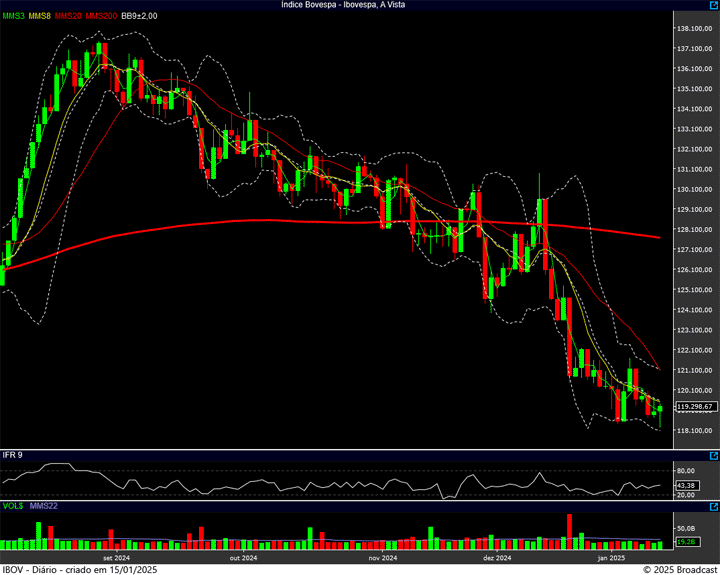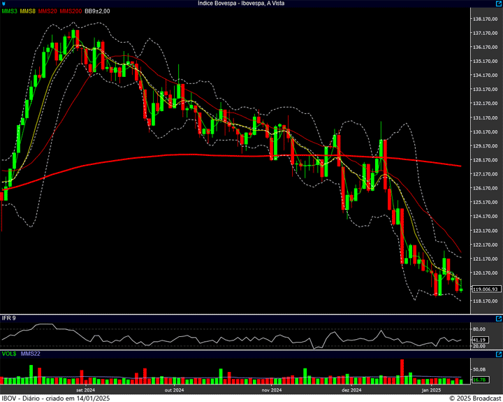 Sim, 118.400 pontos permanece sendo a região de suporte (com um último bastião de defesa no 118.200 pontos), e a resistência no 121.750 pontos. Mas onde estarei de olho, hoje, você já sabe. 🙂