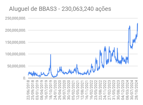 Este é um dado que acompanho diariamente, serve para que eu veja o “peso” extra que existe sobre estas ações. Normalmente – veja bem, normalmente … – um aumento na posição alugada pode significar um movimento de queda no papel. E o contrário também é verdadeiro, uma cobertura pode significar um movimento de alta.