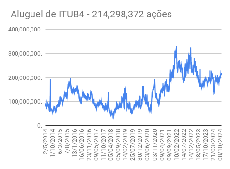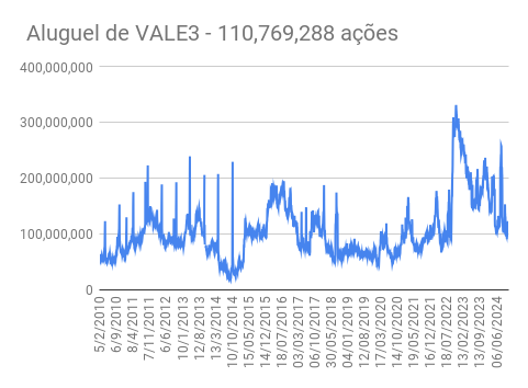 Este é um dado que acompanho diariamente, serve para que eu veja o “peso” extra que existe sobre estas ações. Normalmente – veja bem, normalmente … – um aumento na posição alugada pode significar um movimento de queda no papel. E o contrário também é verdadeiro, uma cobertura pode significar um movimento de alta.