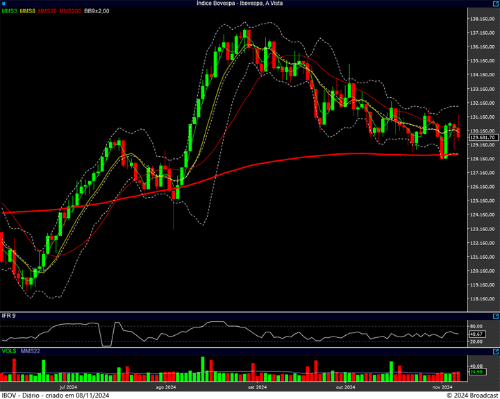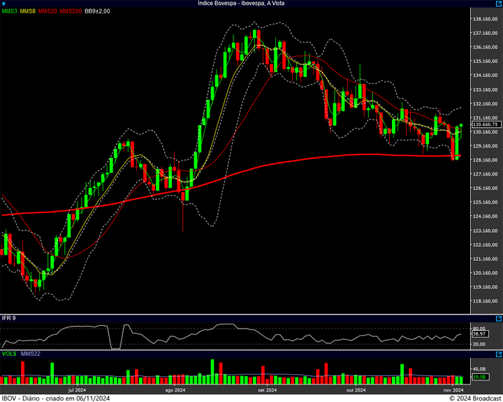Com isso, voltamos à programação normal: suporte nos 128 mil pontos, resistência nos 130.800 pontos. (com a “maré” mudando apenas se romper os 131.800 pontos …)