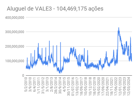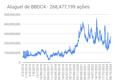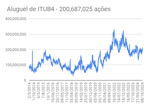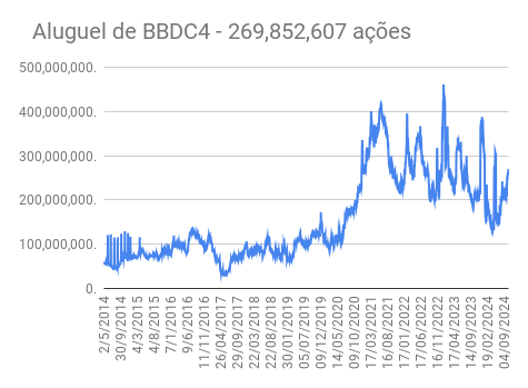 Este é um dado que acompanho diariamente, serve para que eu veja o “peso” extra que existe sobre estas ações. Normalmente – veja bem, normalmente … – um aumento na posição alugada pode significar um movimento de queda no papel. E o contrário também é verdadeiro, uma cobertura pode significar um movimento de alta.