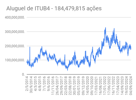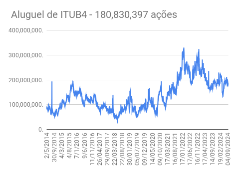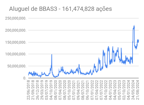 Este é um dado que acompanho diariamente, serve para que eu veja o “peso” extra que existe sobre estas ações. Normalmente – veja bem, normalmente … – um aumento na posição alugada pode significar um movimento de queda no papel. E o contrário também é verdadeiro, uma cobertura pode significar um movimento de alta.