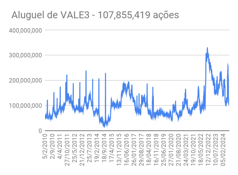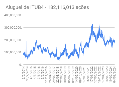 Este é um dado que acompanho diariamente, serve para que eu veja o “peso” extra que existe sobre estas ações. Normalmente – veja bem, normalmente … – um aumento na posição alugada pode significar um movimento de queda no papel. E o contrário também é verdadeiro, uma cobertura pode significar um movimento de alta.