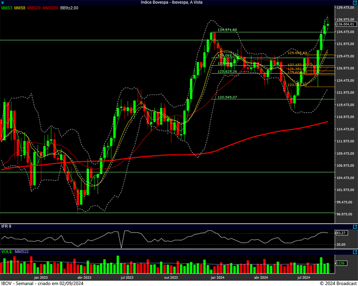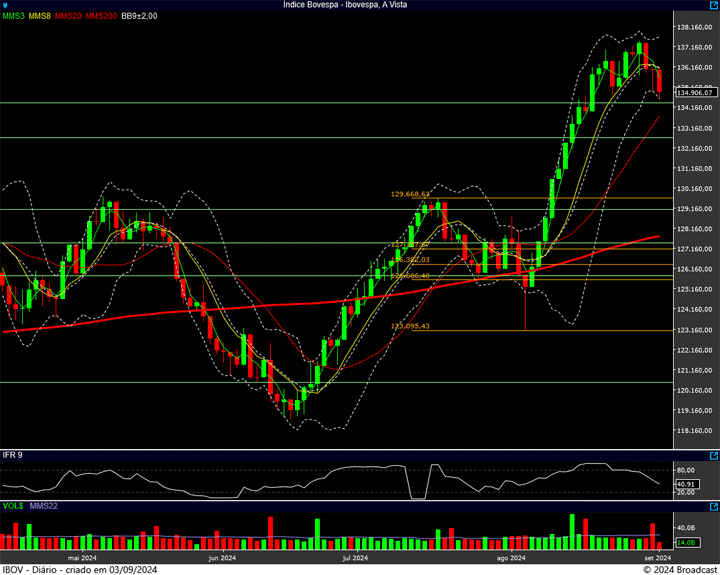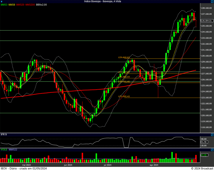 Ela foi a mínima da correção do dia 22 de agosto, além de ser bem próxima da antiga máxima histórica, os 134.392 pontos.