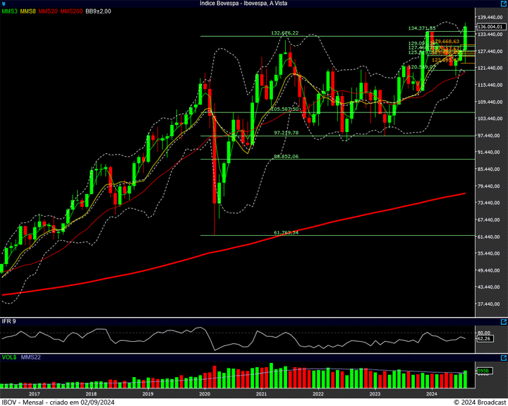 Portanto, fiquemos de olho nesta faixa de preços dos 134 mil, 134.500 pontos. Vamos ver o que acontece se chegarmos nela.