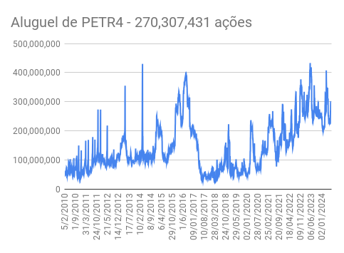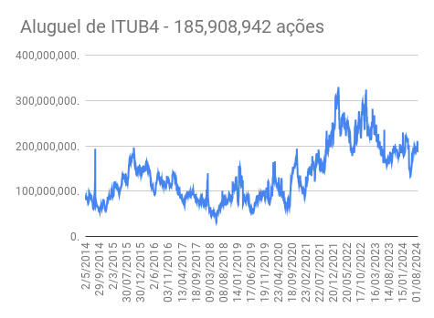 Este é um dado que acompanho diariamente, serve para que eu veja o “peso” extra que existe sobre estas ações. Normalmente – veja bem, normalmente … – um aumento na posição alugada pode significar um movimento de queda no papel. E o contrário também é verdadeiro, uma cobertura pode significar um movimento de alta.