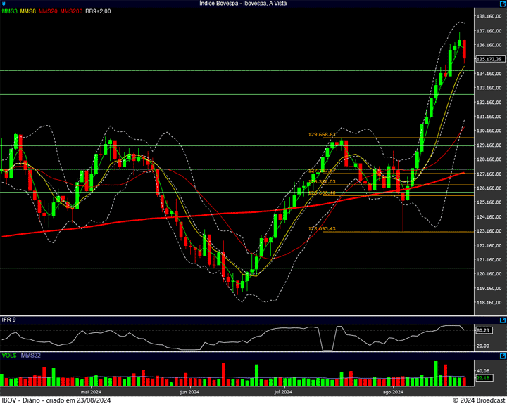 Já o suporte, fica na região dos 134.800 pontos. Com o 136.600 pontos se apresentando como ponto mais importante de todos os tempos da última semana, especialmente por hoje. 😉