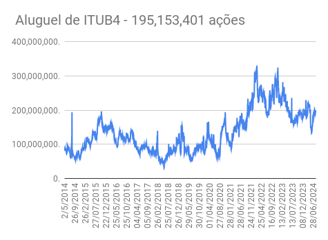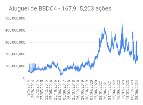 Este é um dado que acompanho diariamente, serve para que eu veja o “peso” extra que existe sobre estas ações. Normalmente – veja bem, normalmente … – um aumento na posição alugada pode significar um movimento de queda no papel. E o contrário também é verdadeiro, uma cobertura pode significar um movimento de alta.