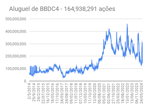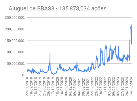 Este é um dado que acompanho diariamente, serve para que eu veja o “peso” extra que existe sobre estas ações. Normalmente – veja bem, normalmente … – um aumento na posição alugada pode significar um movimento de queda no papel. E o contrário também é verdadeiro, uma cobertura pode significar um movimento de alta.