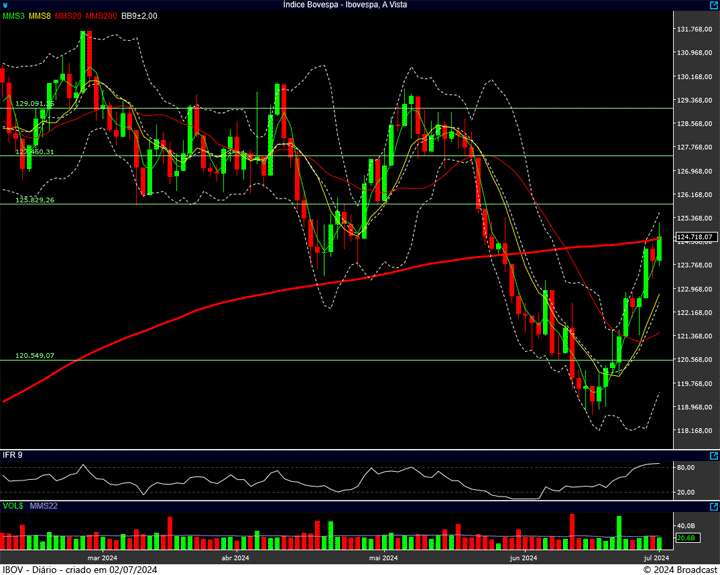 É ficar de olho na região dos 125 mil, para ver se consegue embalar … (que é +- onde se encontra a média de 200 pregões no gráfico diário)