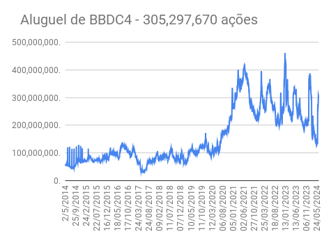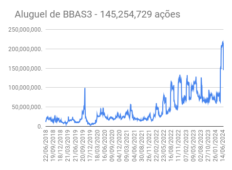 Este é um dado que acompanho diariamente, serve para que eu veja o “peso” extra que existe sobre estas ações. Normalmente – veja bem, normalmente … – um aumento na posição alugada pode significar um movimento de queda no papel. E o contrário também é verdadeiro, uma cobertura pode significar um movimento de alta.