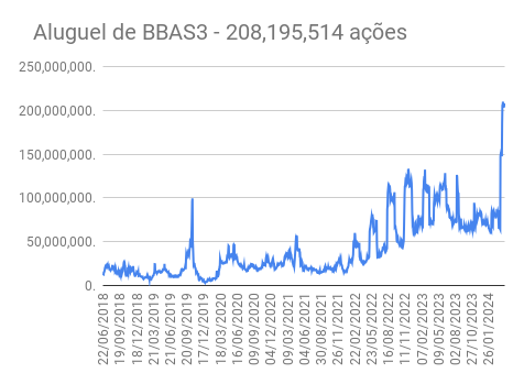 Este é um dado que acompanho diariamente, serve para que eu veja o “peso” extra que existe sobre estas ações. Normalmente – veja bem, normalmente … – um aumento na posição alugada pode significar um movimento de queda no papel. E o contrário também é verdadeiro, uma cobertura pode significar um movimento de alta.