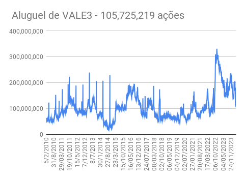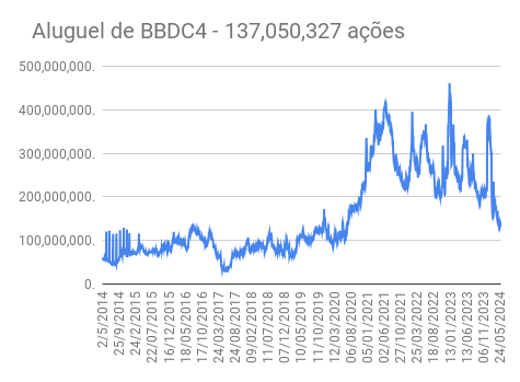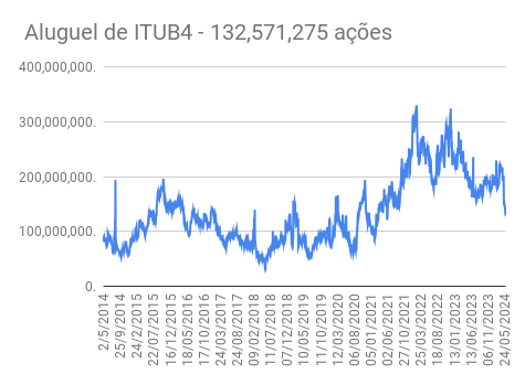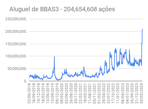 Este é um dado que acompanho diariamente, serve para que eu veja o “peso” extra que existe sobre estas ações. Normalmente – veja bem, normalmente … – um aumento na posição alugada pode significar um movimento de queda no papel. E o contrário também é verdadeiro, uma cobertura pode significar um movimento de alta.