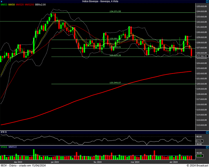 Se romper, temos a média de 200 dias e o alvo do pivot de queda, uma expansão de Fibonacci, pela frente. Pois suporte MESMO, só lá na região dos 112 MIL pontos ! 🙄