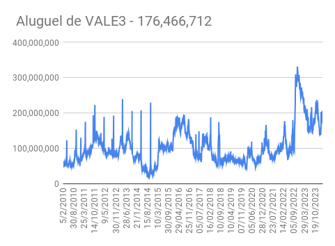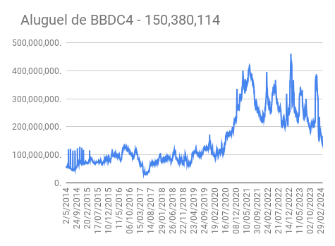 Este é um dado que acompanho diariamente, serve para que eu veja o “peso” extra que existe sobre estas ações. Normalmente – veja bem, normalmente … – um aumento na posição alugada pode significar um movimento de queda no papel. E o contrário também é verdadeiro, uma cobertura pode significar um movimento de alta.