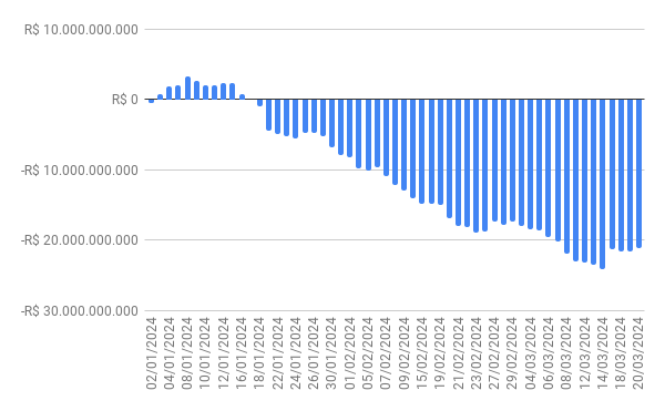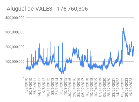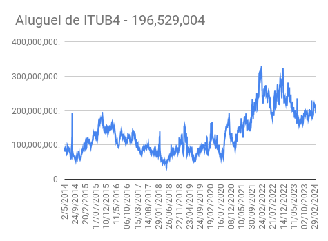 Este é um dado que acompanho diariamente, serve para que eu veja o “peso” extra que existe sobre estas ações. Normalmente – veja bem, normalmente … – um aumento na posição alugada pode significar um movimento de queda no papel. E o contrário também é verdadeiro, uma cobertura pode significar um movimento de alta.