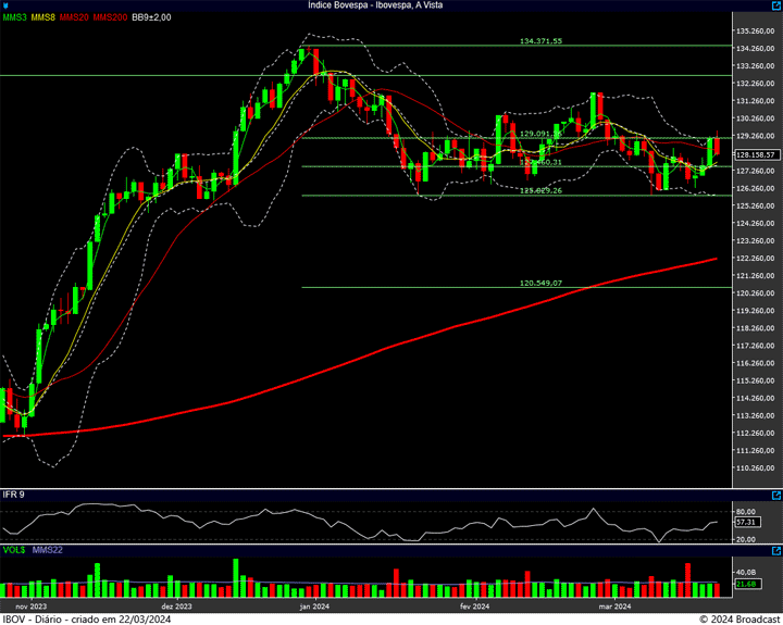 Lembrando que a região dos 126.250 pontos é o suporte atual. Já a resistência está nos 131.700 pontos.