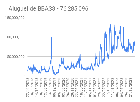 Este é um dado que acompanho diariamente, serve para que eu veja o “peso” extra que existe sobre estas ações. Normalmente – veja bem, normalmente … – um aumento na posição alugada pode significar um movimento de queda no papel. E o contrário também é verdadeiro, uma cobertura pode significar um movimento de alta.