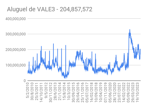 Este é um dado que acompanho diariamente, serve para que eu veja o “peso” extra que existe sobre estas ações. Normalmente – veja bem, normalmente … – um aumento na posição alugada pode significar um movimento de queda no papel. E o contrário também é verdadeiro, uma cobertura pode significar um movimento de alta.