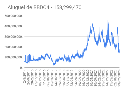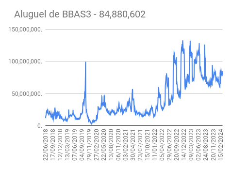Este é um dado que acompanho diariamente, serve para que eu veja o “peso” extra que existe sobre estas ações. Normalmente – veja bem, normalmente … – um aumento na posição alugada pode significar um movimento de queda no papel. E o contrário também é verdadeiro, uma cobertura pode significar um movimento de alta.