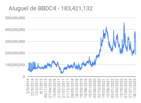 Este é um dado que acompanho diariamente, serve para que eu veja o “peso” extra que existe sobre estas ações. Normalmente – veja bem, normalmente … – um aumento na posição alugada pode significar um movimento de queda no papel. E o contrário também é verdadeiro, uma cobertura pode significar um movimento de alta.