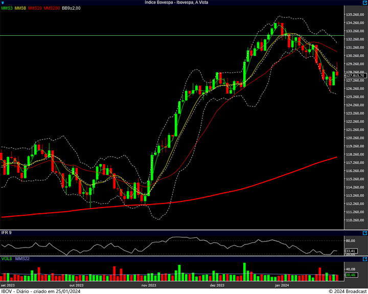 Então, hoje, sexta-feira, permaneceremos com os mesmos números de ontem: suporte no 125 mil, resistência no 129.500 pontos. Mas não esquecendo da importância do 127.600 … Combinado ? 😉